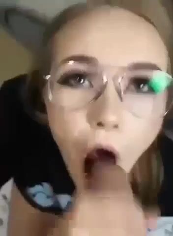 Unknown glasses girl sucks cock and shows cum in mouth